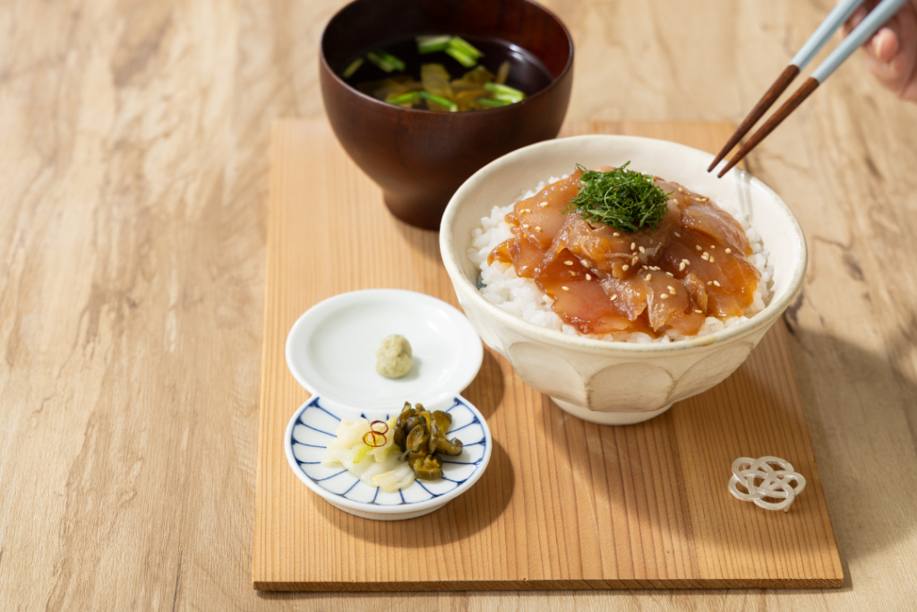 三重県尾鷲市産の鮮度の高いまぐろを、ゴマ風味の漬けにしました。少し甘めのゴマだれが、しっかりとした食感の生まぐろの旨味を引き立てます。お好みでネギや刻みのりを加えて、お酒の肴はもちろん、白いご飯にのせて漬け丼としてもお召し上がりいただけます。お好みの方法でお楽しみください。