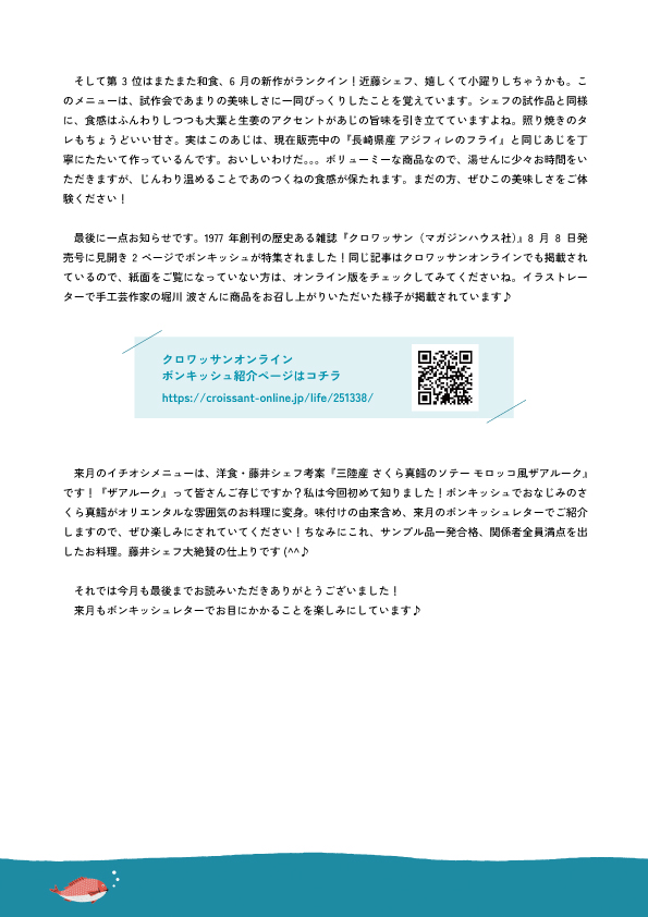 来月もボンキッシュレターでお目にかかることを楽しみにしています♪