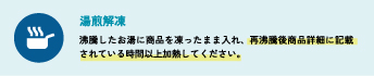 この、『再沸騰後』がポイントでして、商品をお湯に入れると、いくら沸騰していてもやはり最初は温度が下がってしまいます。商品のサイズにもよりますが、再沸騰までにはだいたい約1分かかるんですよね。なので、再沸騰のタイミングから計測して湯せん時間を決めているのですが、もしかすると、お客さまによっては再沸騰まで待てない方もいらっしゃるのではないかとなりました。