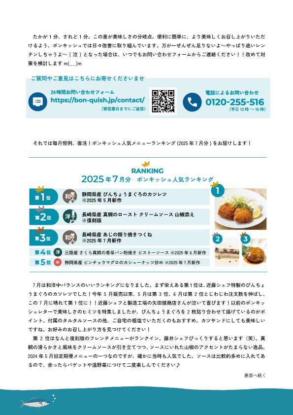 それでは毎月恒例、復活!ボンキッシュ人気メニューランキング(2025年7月分)をお届けします!
