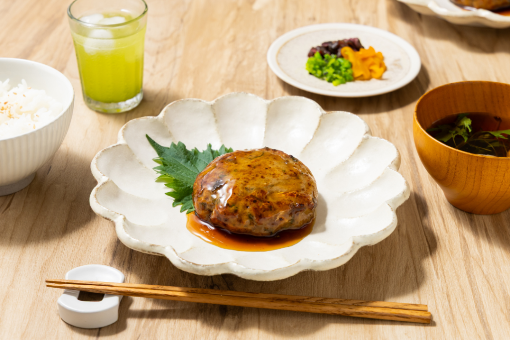 漁獲量日本一を誇る長崎県産のあじを使った、近藤シェフ特製の照り焼きつくねをお届け。肉厚で上質な味わいの