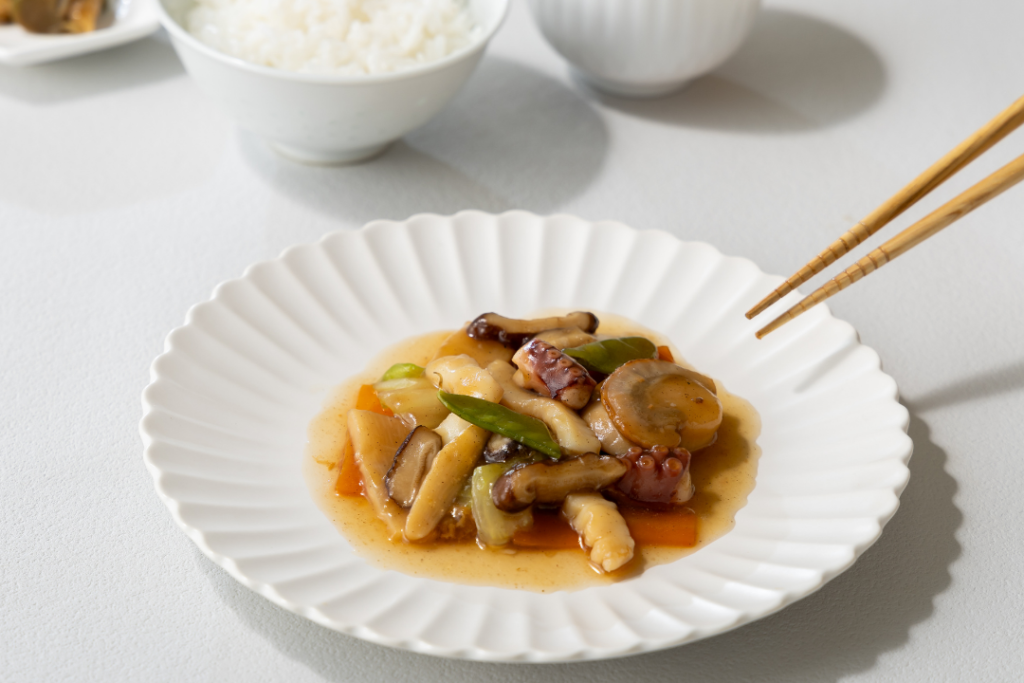北海道産のホタテ、青森県産のアカイカ、兵庫県明石市産の明石だこを贅沢に使った海鮮八宝菜をボンキッシュからお届け。旨みたっぷりの西尾シェフ特製中華だれが、適度な弾力のある海鮮と、シャキシャキとした食感の野菜に絡み、お料理全体を盛り上げます。少し甘みのあるたれで、白いご飯が止まらない逸品。ビールとの相性も抜群です。