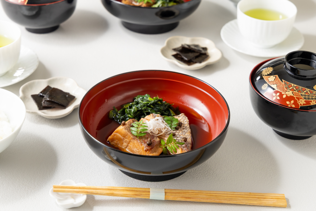 身が厚く上品な甘みが特徴の長崎県産真鯛を、兵庫県の伝統料理「有馬煮」に仕立てました。有馬煮は、兵庫県有馬地方特産の山椒を使った煮物を起源とし、明治時代に手土産として全国へ広まった料理です。