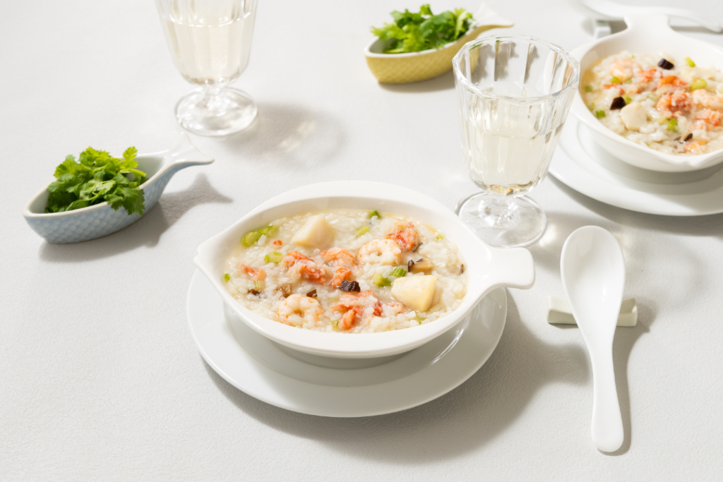 ホタテやズワイガニ、芝エビなど海の旨味を贅沢に閉じ込めた、シャウ・ウェイシェフ特製の海鮮中華粥。芝エビの頭からとった濃厚なだしが、ひと口ごとに深い旨味を広げます。中華粥の定番ジャスミン米に白米をブレンドし、日本人の口に合うように仕上げました。とろりとした粥の中に、食べ応えのあるホタテやズワイガニ、刻んだセロリの食感が絶妙なアクセントを添えます。やさしくも贅沢な味わいは、スペイン産白ワイン「アルバリーニョ」とのマリアージュがおすすめです。