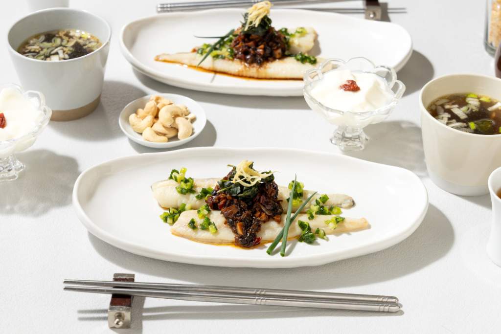 仕上げにかけるのは、豆鼓と発酵唐辛子、香味野菜を合わせた、シャウ・ウェイシェフ特製の豆鼓ソース。豆鼓は香港では蒸し物や炒め物に欠かせない発酵調味料で、ご飯や麺とよく合います。
