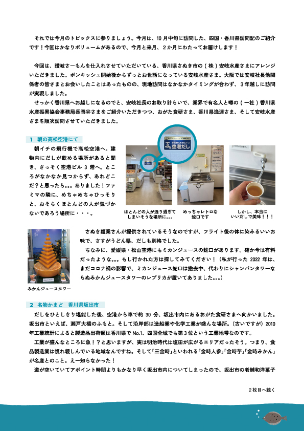 それでは今月のトピックスに参りましょう。今月は、10月中旬に訪問した、四国・香川県訪問記のご紹介です!今回はかなりボリュームがあるので、今月と来月、2か月にわたってお届けします!